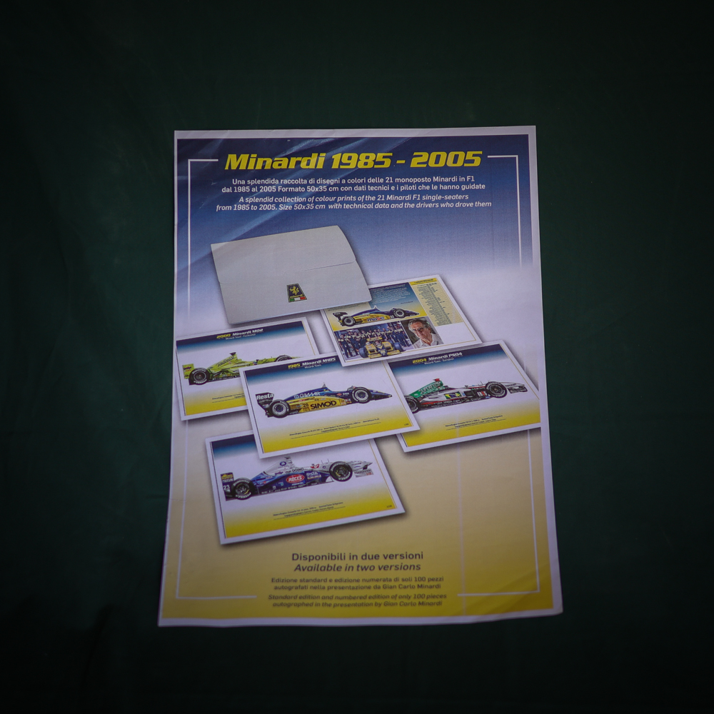 The prints are available in two versions: a standard edition and a numbered edition limited to 100 pieces, which are autographed by Gian Carlo Minardi.