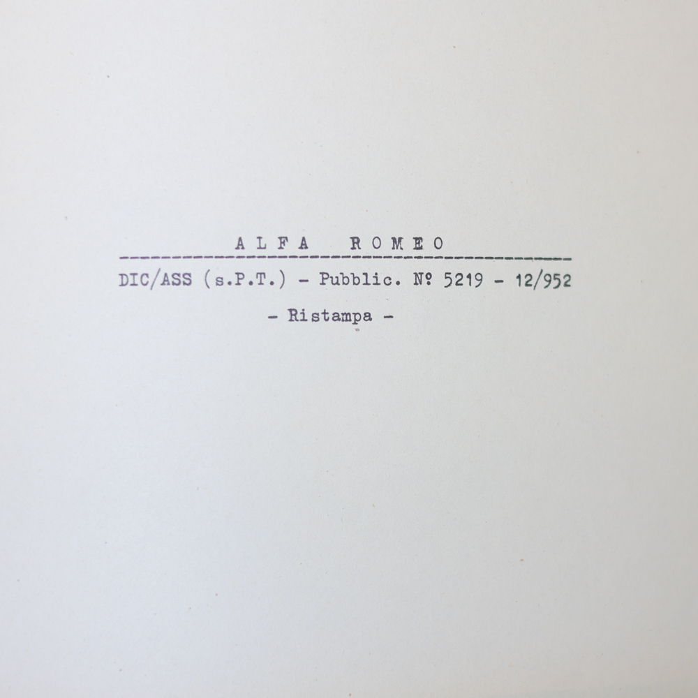 CATALOGO DELLE PARTI DI RICAMBIO ALFA ROMEO 6C 2500. Anno 1952